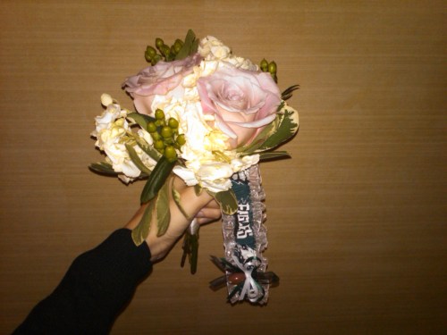 The most recent catch was at a wedding in CT. I have photographic evidence of this too (see below). Basically, I hesitantly placed myself in the shrinking cluster of “single/unmarried ladies” (I was dating someone great, but I think this still included me) and waited. For whatever reason, I knew it was coming right for me before it was even tossed. I also knew I was going to catch it. So, I waited, and there it was. I didn’t even have to budge. Yay. I think. Now what?